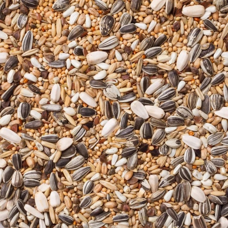 - Millet jaune 20% | Alpistes 14% | Froment 12,5% | Millet blanc 12% | Avoine pelée 10% | Tournesols striés 8% | Cardi 5% | Tournesols blanc 4% | Millet rouge 3,5% | Graines de lin 3% | Chanvre 3% | Sarrasin 2,5% | Riz paddy 2,5%